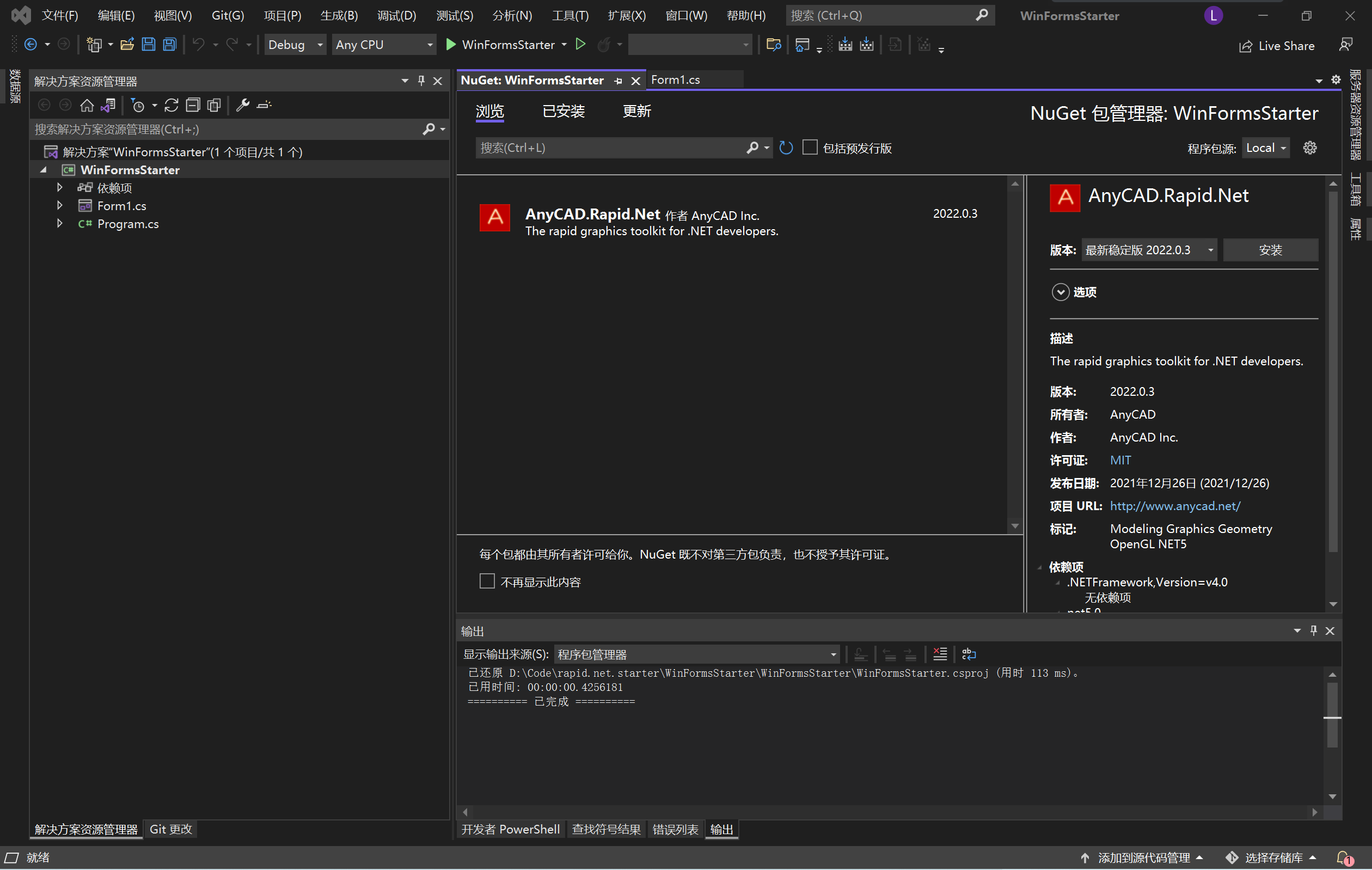 从nuget.org上或者本地安装AnyCAD Rapid SDK 2022。