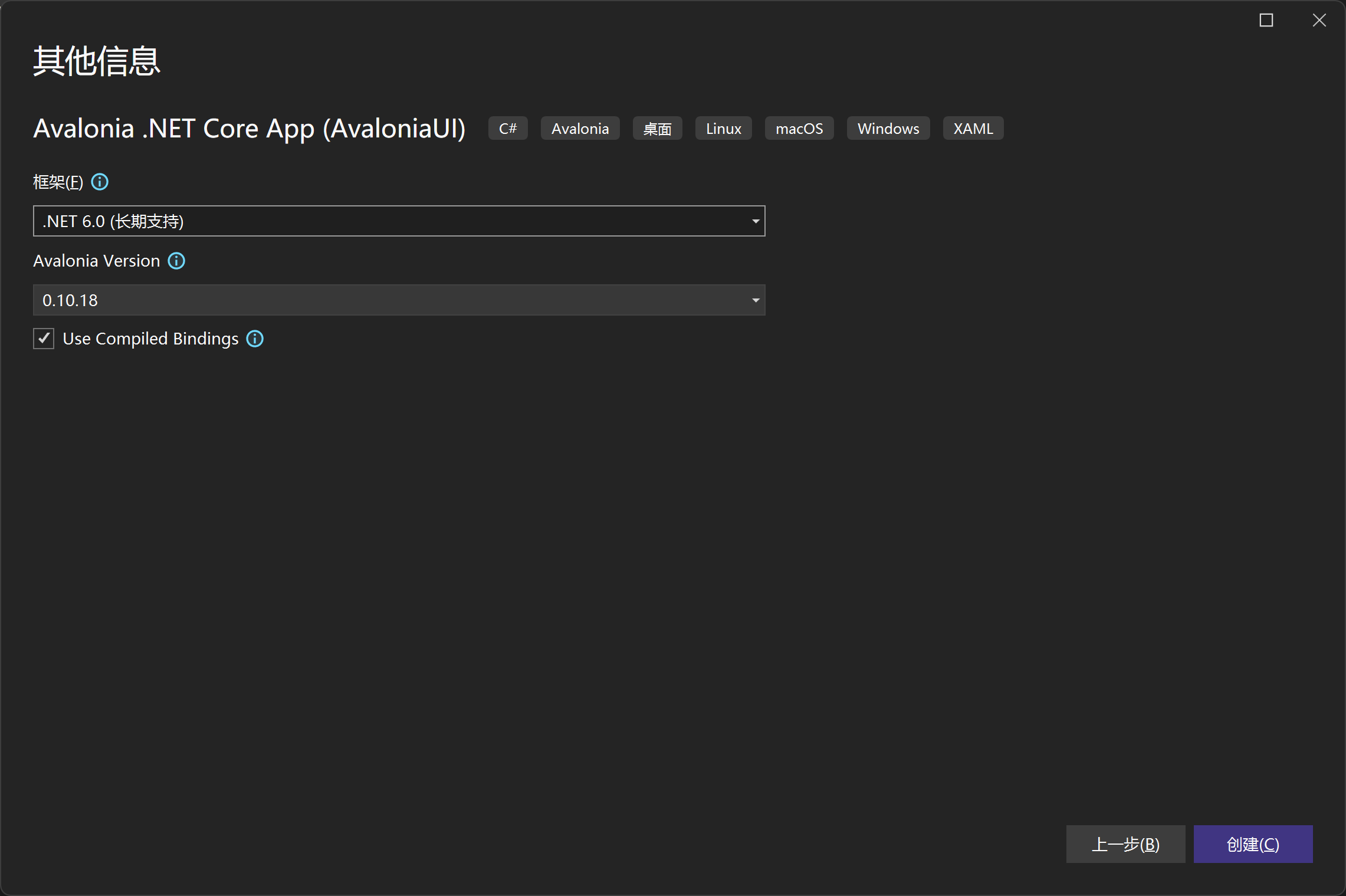 选择创建AvaloniaUI项目